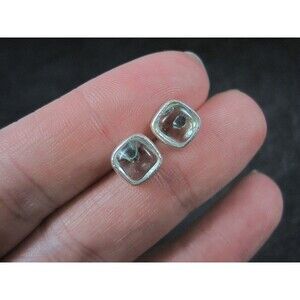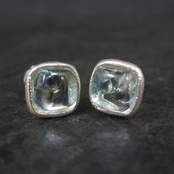 Estate Sterling Carved Blue Art Glass Stud Earrings