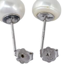 Estate Sterling Silver 925 8.1mm White Pearl Stud Earrings