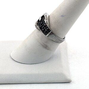 • Estate Sterling Silver 925 Black Crystal Buckle Ring Size 7, 3.8g, Marked DBJ