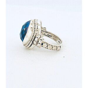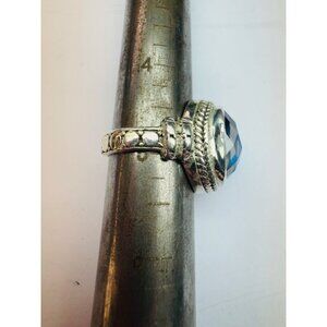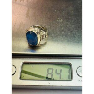 • Estate Sterling Silver 925 Blue Crystal Cocktail Ring, Size 5, 8.41g, Vintage