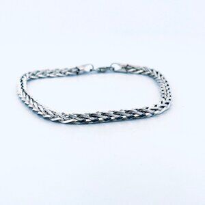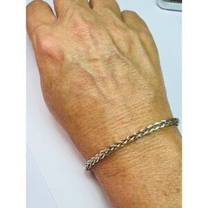 • Estate Sterling Silver 925 Braided Chain Bracelet 8" Unisex Italy, Lobster Claw Clasp, 7.8g