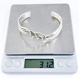 Estate sterling silver 925 braided open cuff bracelet with a bold woven design and a comfortable 7-inch fit. Striking texture and solid silver construction make this a standout statement piece.