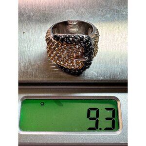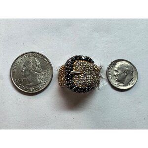 • Estate Sterling Silver 925 Buckle Ring Black White CZ Two-Tone Size 6 Vintage