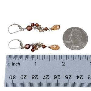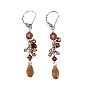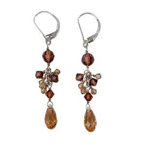 Gorgeous estate sterling silver earrings featuring rich chocolate-toned faceted crystals that catch the light with every move. Finished with secure latchback hooks, these 925 silver dangles bring warm sparkle and a sophisticated autumnal palette to any outfit.
