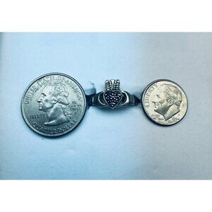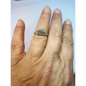 • Estate Sterling Silver 925 Claddagh Ring Heart & Crown Design, Size 2.5g