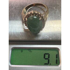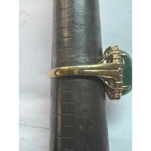 Estate Sterling Silver 925 Green Jade Oval Halo Ring Size 11 Gold Vermeil 9.1g