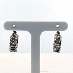 • Estate Sterling Silver 925 Hoop Earrings Textured Links Design, 4.1g, Marked