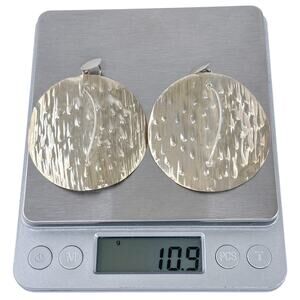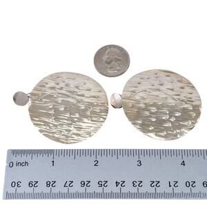 Estate Sterling Silver 925 Large Hammered Disc Earrings