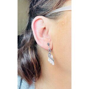 • Estate Sterling Silver 925 Marcasite & CZ Drop Dangle Earrings, 4.03g, Push Backs