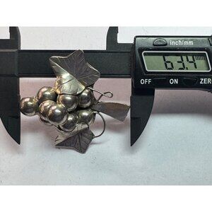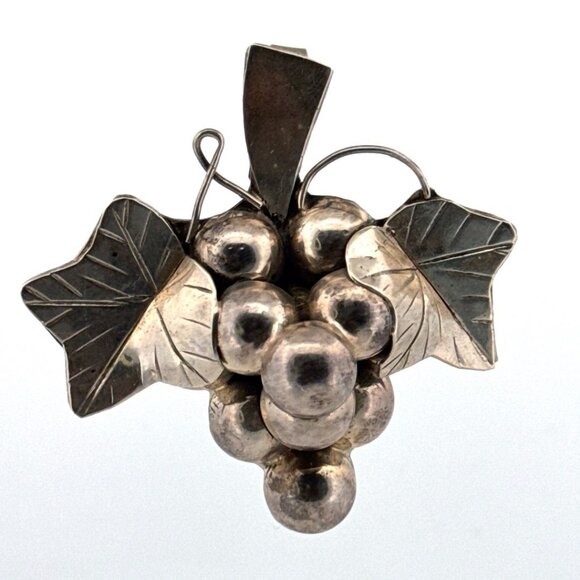 • Estate Sterling Silver 925 Mexico Grape Cluster Leaf Brooch Pin, 31.4g, 63mm