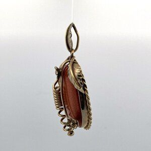 • Estate Sterling Silver 925 Pendant Large Goldstone Gemstone Floral Leaf Design