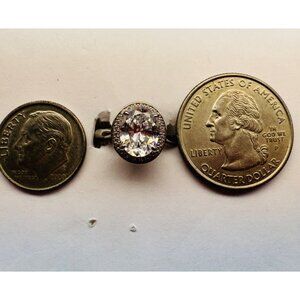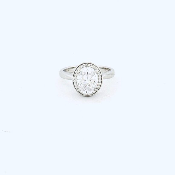 • Estate Sterling Silver 925 Simulated Diamond Halo Ring Size 6 Rhodium Finish