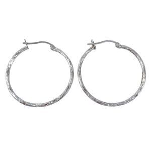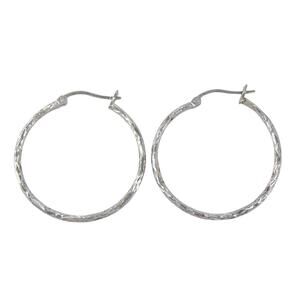 Classic estate sterling silver hoop earrings with a lightly textured finish that adds subtle shimmer and dimension. Lightweight and versatile, perfect for everyday wear or pairing with bold layered looks.
