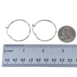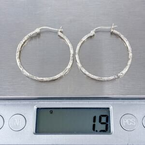 Estate Sterling Silver 925 Textured Hoop Earrings