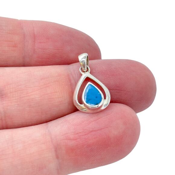 Estate Sterling Silver 925 Turquoise Teardrop Pendant