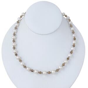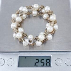 Estate Sterling Silver 925 White Pearl Beaded Necklace 18"
