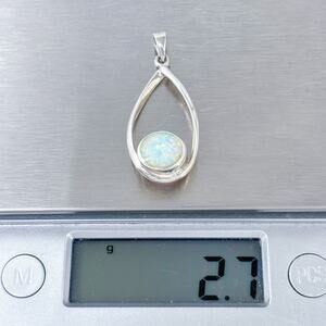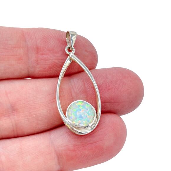 Estate sterling silver 925 pendant featuring a glowing white round opal set in a sleek teardrop frame. A soft, iridescent gemstone charm with vintage elegance — perfect for everyday wear, gifting, or adding a touch of luminous color to any chain.