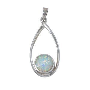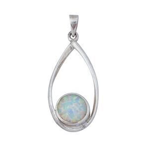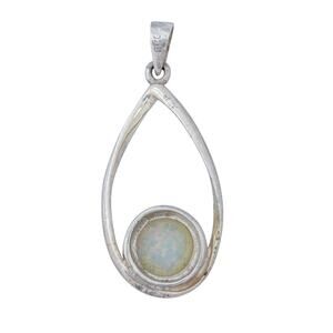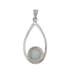 Estate Sterling Silver 925 White Round Opal Teardrop Pendant