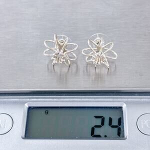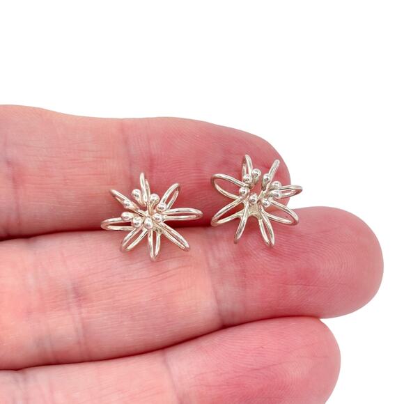 Estate Sterling Silver 925 Wire Floral Stud Earrings