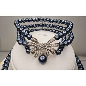 This Estate Style Triple Strand Faux Blue Pearl & Rhinestone 3 Piece Jewelry Set features a stunning necklace with three strands of faux blue pearls and rhinestones. The statement piece is adjustable and perfect for adding a touch of elegance to any outfit. The set includes a pendant and collar style piece, making it versatile for different looks. Made with high-quality materials, this timeless jewelry set is a must-have for any fashion-forward individual looking to make a statement.