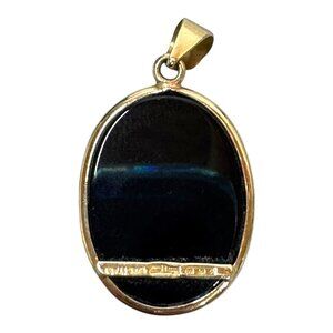 Estate Vintage 14K Yellow Gold Blue Agate Onyx Cameo Mother Child Pendant Italy