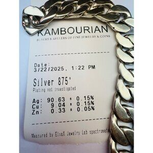This bold and beautifully crafted estate vintage bracelet is made from solid 875 silver (87.5% pure silver), verified with a spectrometer test. It features an extra thick and chunky curb chain link design with a wide 15.8mm profile, exuding a striking, classic presence on the wrist. The bracelet is secured with a sturdy toggle clasp and measures approximately 7 inches in length, making it a perfect fit for most wrists.