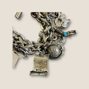 Estate Vintage Charm Bracelet Loaded With Sterling Charms Including Bell Trading