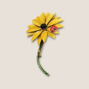Estate Vintage Original by Robert Metal Yellow Flower Ladybug Brooch Pin 3.5”