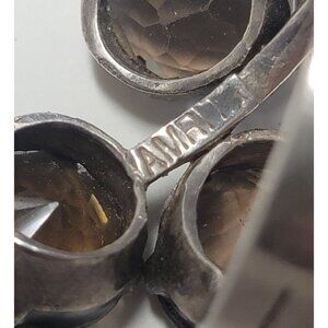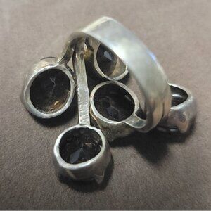 Estate Vintage Rare Amrita 925 Silver Cluster Ring With Smoky Quartz Gemstones