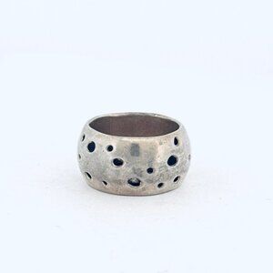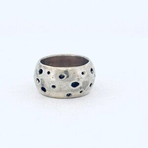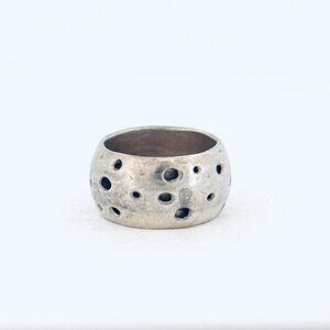 Estate Vintage Sterling Silver 925 Wide Band Ring Size 7 Moon Crater Design
