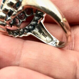 Estate Womens Ring Sterling Silver Blue Topaz Cluster Marcasite Size 9 Signed NF
