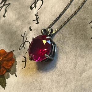 Estate XL Ruby 925 Sterling Silver Marked BBJ Beautiful Sparkling Stone Necklace