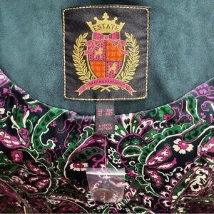 Step into sophisticated style with this stunning Estate by Isaac Mizrahi blazer! Crafted in a luxe emerald green faux suede, this piece exudes quiet luxury with a modern, fashion-forward twist. Fully lined in a vibrant paisley print, it’s the kind of hidden detail that makes all the difference.