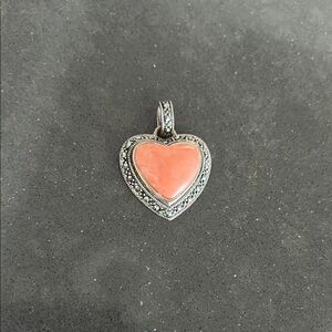 Estate sterling silver Heart Pendant with genuine Peach garnet center stone
