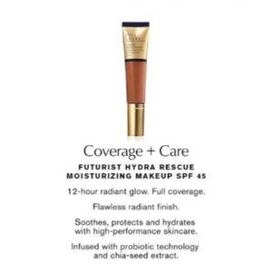 Flawless makeup with serious skincare. Estée Lauder Futurist Hydra Rescue Moisturizing Makeup SPF 45 is a hydrating liquid foundation that helps to soothe and nourish skin for a lasting radiant glow.