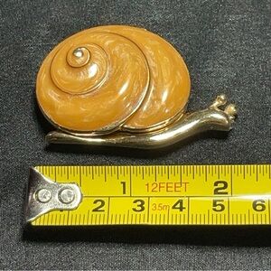 Estée Lauder, vintage, collectible Charming snail brooch in gold and tan. White Linen
