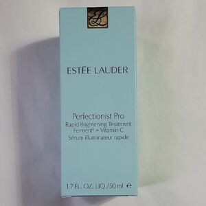 Estée Lauder Perfectionist Pro Rapid Brightening Treatment with Vitamin C. Sleek white bottle with a silver cap. Brand new in box!