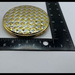 This compact is stunning and in great vintage condition. It has a silver and gold tone weave on the top. The powder looks like it was just used once. It is just beautiful.