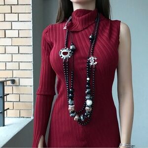 Defined by its deconstructed appeal, this body-hugging dress from Esteban Cortazar is crafted with asymmetric proportions, outlined with slanted seams and splits. Cut with a sensual single-sleeve design, this red piece features contrast ruffles cascading along the cuff and hem. Red rib knit Split foldover turtleneck and ruffle-trimmed cuff.