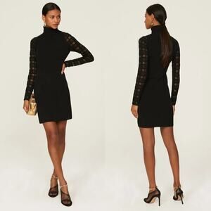Esteban Cortazar Dress Sheer Lattice Sleeve Knit Turtleneck Sheath Mini Black XL