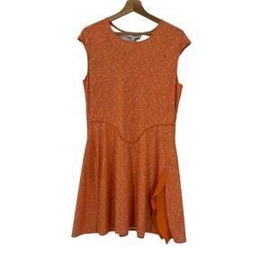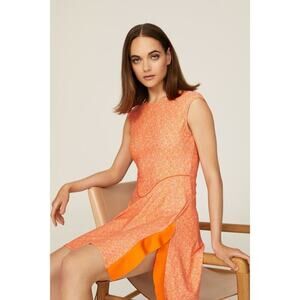 A ruffled slit adds modern flair to this vibrant dot-print dress by Esteban Cortazar Collective.