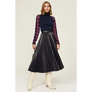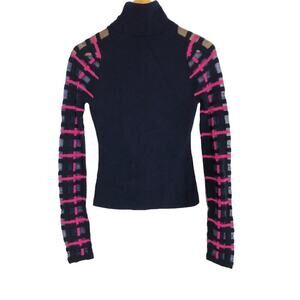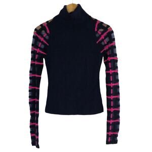 Esteban Cortazar Collective Top Sheer Lattice Sleeve Turtleneck Navy & Pink S