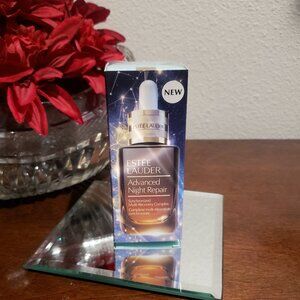 Revitalize your skin with Estee Lauder's Advanced Night Repair set. Luxurious blue and gold packaging. Perfect for nighttime skincare.