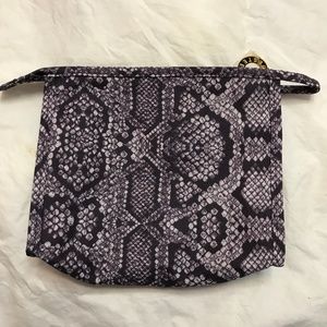 Estee Lauder Cosmetic Makeup bag NWOT. Measures 8"×6"×1.75". Very cute reptile skin pattern. Bag has finger loop for easy carrying and the zipper works perfectly and is still covered with the protective plastic. Never been used, but has been stored with other cosmetic bags. This bag is super lightweight and 100% polyester.