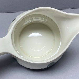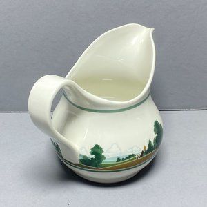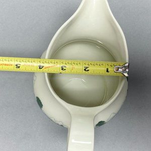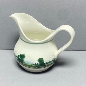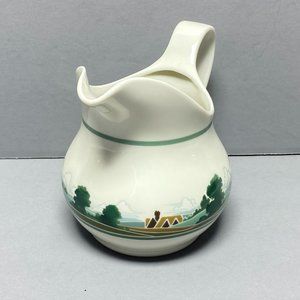 This vintage 70's Estee Lauder Creamer Pitcher from the Aliage Country Winter Porcelain Collection is a beautiful addition to any table. Its cream, green, and brown colors, crafted in Japan, hold 24 ounces of your favorite beverage.