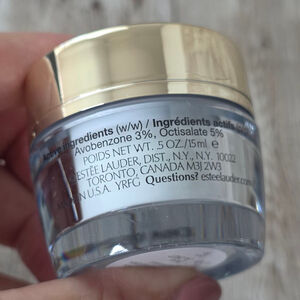 This is a new, unused Estee Lauder DayWear Multi-Protection 24H-Moisture Creme SPF 15. The jar is clear with a gold-colored lid. The jar contains 0.5 oz / 15 ml of product. The item is new without tags or box. There are no visible imperfections on the jar or lid. The product is designed for daily moisture and sun protection.
