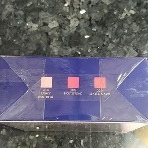 Estee Lauder Travel Exclusive 3 pure color love lipsticks, one of each color #430 Crazy Beautiful, #300 Hot Streak, #220 Shock & Awe. All three are Full Size and come with a clear zipper travel case, Sealed in cellophane, would make a great gift for the special lady in your life. These lipsticks glide on effortlessly, cover evenly. Wear a single shade or Layer up for custom color. 0.12 oz each