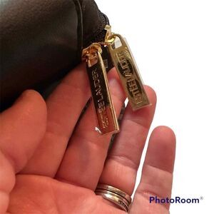 This is a nice, large bag. Measures 8.5x5.5x4.5 inches. Plastic still covering both zipper pulls.