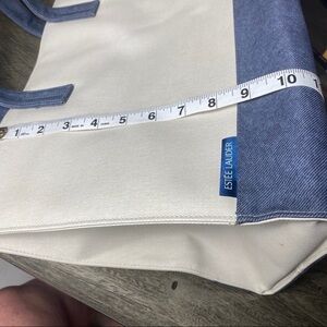 #ToteBag #CanvasTote #EsteeLauderBag #WorkBag #BeachTote #TravelTote #NavyCreamBag #EverydayBag #GiftWithPurchase #PoshFinds