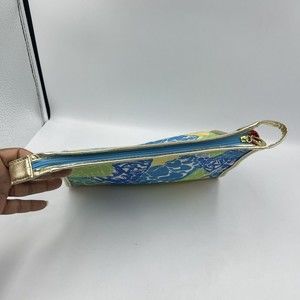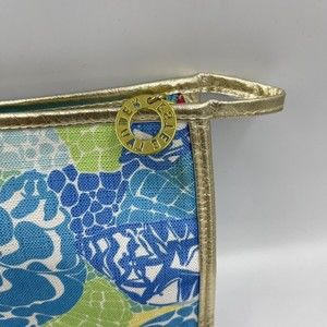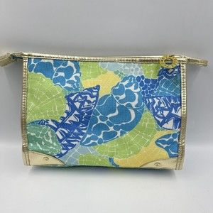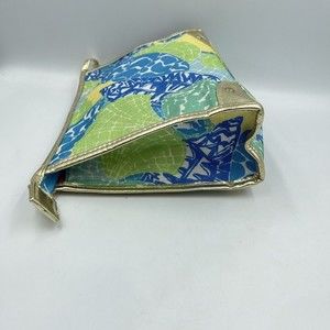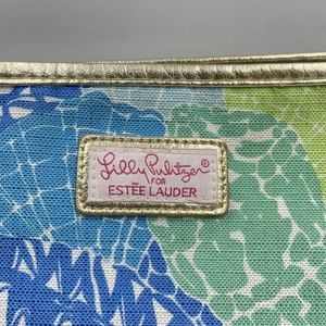 Estee Lauder Lilly Pulitzer Cosmetic Makeup bag Blue Green Gold Trim